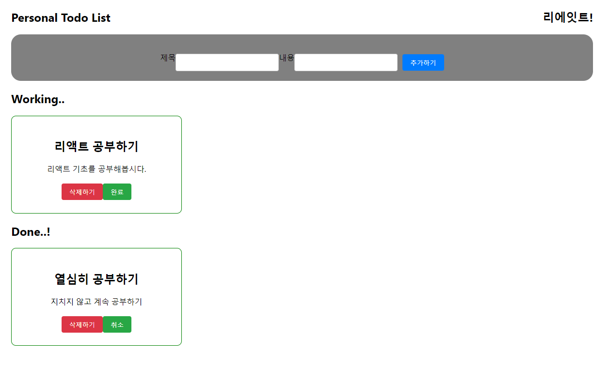 리액트 공부하기 Todo-List만 존재하고 아래의 열심히 공부하기 Todo-List는 사라지지만