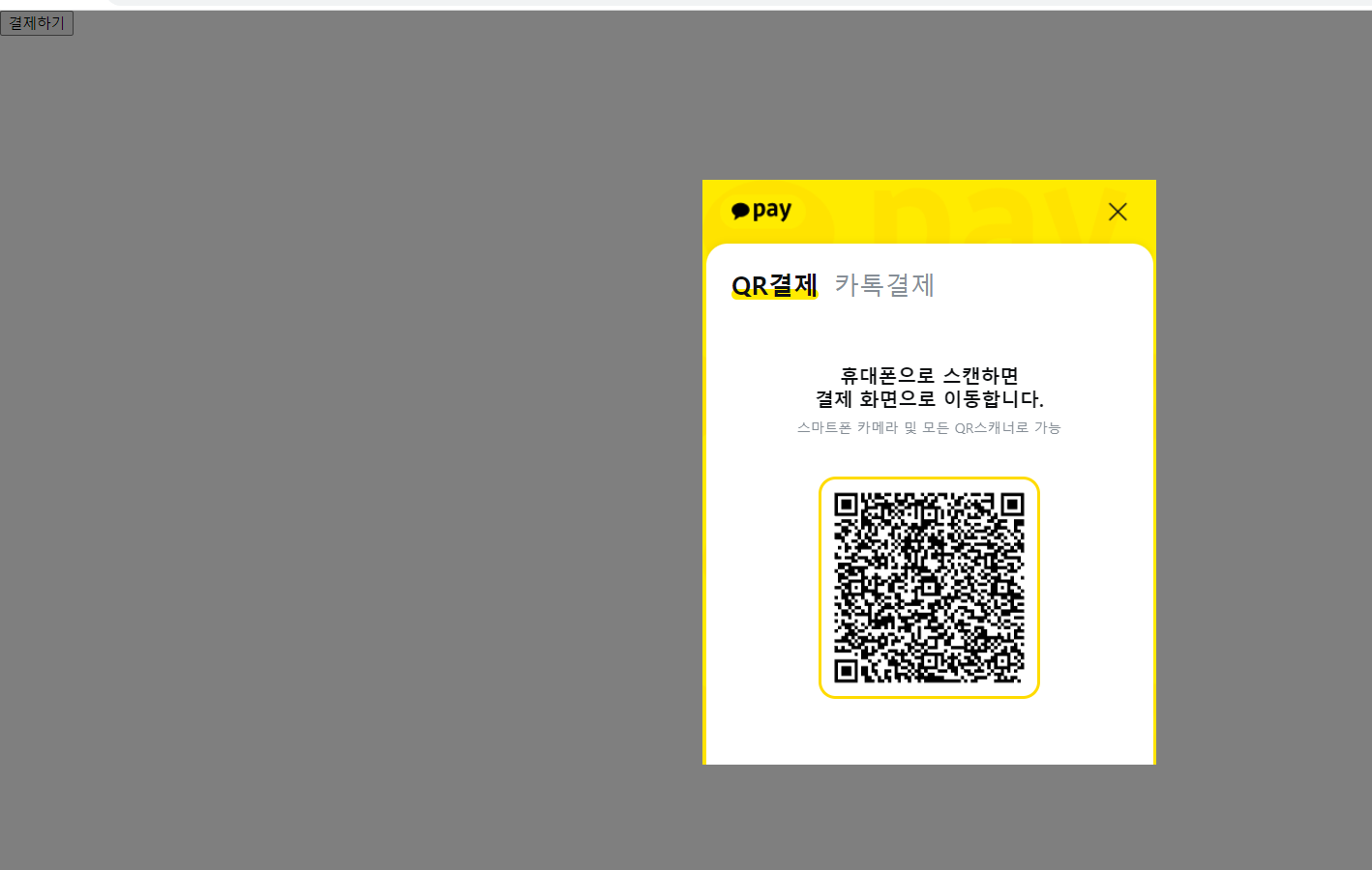 클릭시에 카카오페이 결제창이 잘 불려와지는걸 확인할 수 있었다
